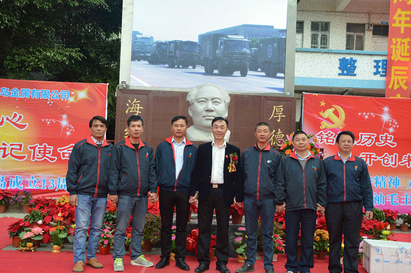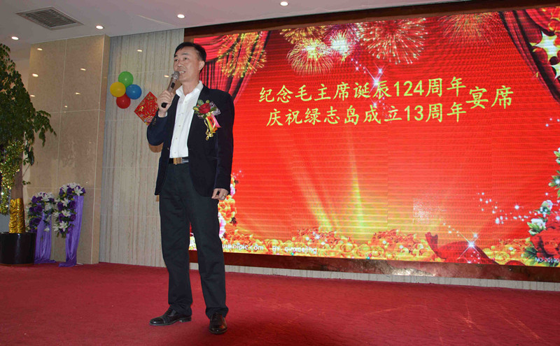 綠志島實業由來自湖南的朱祖生先生創業于2000年,由最初的錫渣冶煉廠經過十來年的艱苦奮斗,現在公司產品包括焊錫條、焊錫絲、焊錫膏,助焊劑,清洗劑,防銹劑,潤滑油等。綠志島實業的發展,在以毛主席思想為信仰的指引下突飛猛進,在“吃水不忘挖井人”的感恩心下穩步發展。為了鞏固毛主席思想作為綠志島的信仰核心,綠志島于2012年12月26日從泰山迎接來毛主席泰山石像,并立于公司內部。自此,綠志島每年12月26日都會齊聚眾多認同毛主席的朋友,在綠志島內緬懷紀念毛主席。2017年是綠志島舉辦毛主席誕辰第六年,為此和志同道合的朋友們齊聚一堂,共慶毛主席誕辰。